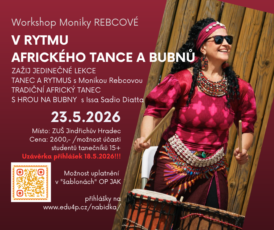 jedinečný workshop zaměřený na ucelený pohled africké kultury z pohledu hudby a tance pod úžasnou pedagožkou a choreografkou Monikou Rebcovou v doprovodu Issa Sadio Diatta nebo Assane